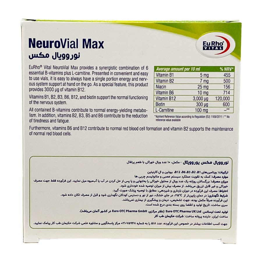 ویال خوراکی نورو ویال مکس 3000 یورویتال Eurhovital Neurovial Max 3000mcg