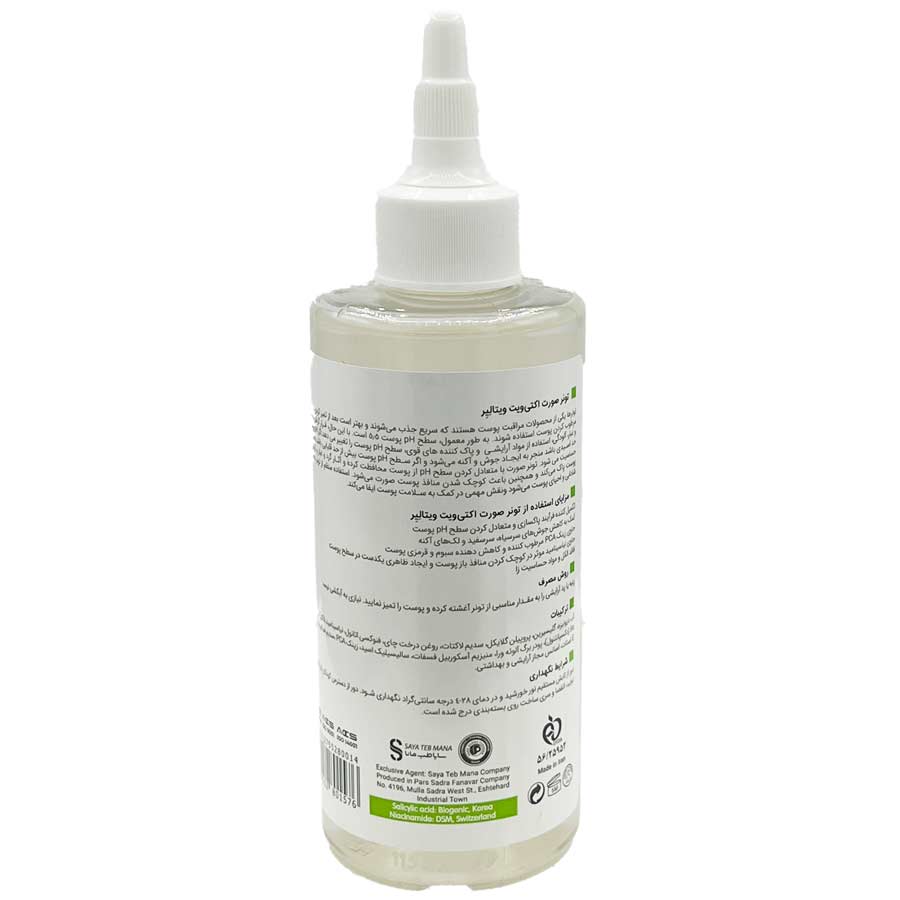 تونر ویتالیر مدل اکتیویت مختص پوستهای چرب و مختلط دارای خاصیت جمع کنندگی منافذ باز پوست تنظیم ترشح چربی دارای خاصیت آنتی باکتریال بدلیل وجود روغن درخت چای در تونر ویتالیر پوست چرب تکمیل کننده فرایند پاکسازی پوست آماده سازی پوست برای استفاده از کر ها و سرم ها فاقد پارابن، فاقد مواد صابونی ضدجوش، ضدالتهاب و قرمزی