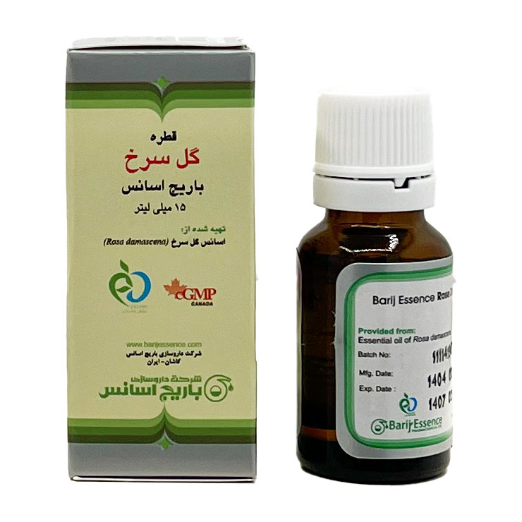 • قطره گل سرخ در بسته‌بندی 15 میلی‌لیتری تولید داروسازی باریج اسانس