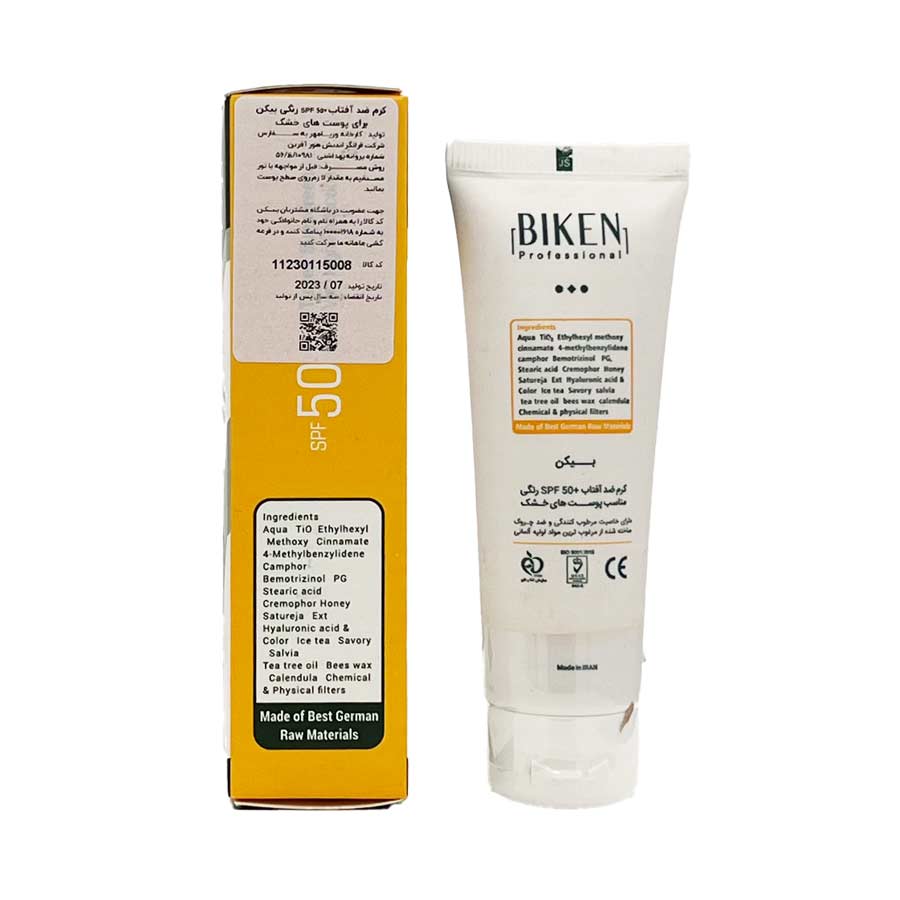 کرم ضد آفتاب 1 لایت بژ تم هلویی مناسب پوست خشک 50 میلی‌لیتر بیکن Biken Suncream SPF50 1 Dry Skin