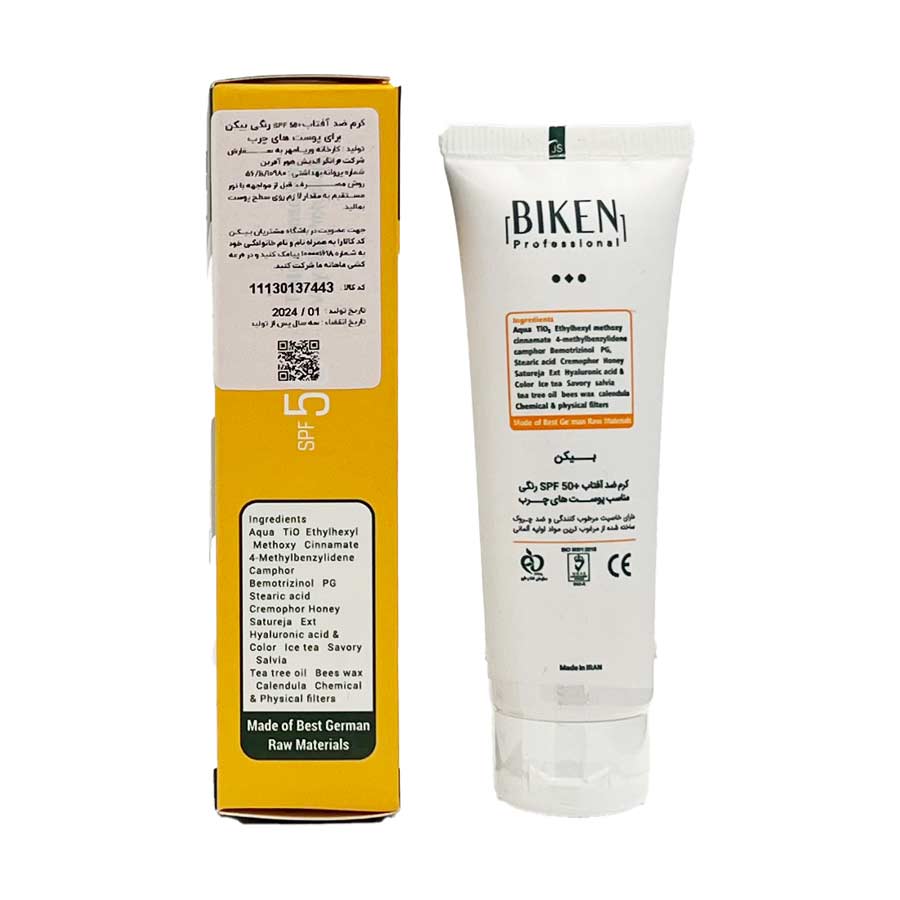 کرم ضد آفتاب 2 نچرال بژ تم هلویی مناسب پوست چرب 50 میلی‌لیتر بیکن Biken Suncream SPF50 2 Oily Skin