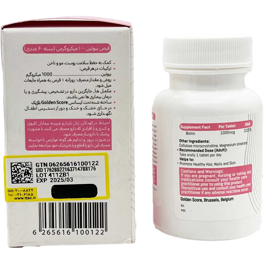 • قرص بیوتین 1000 گلدن اسکور در بسته بندی 60 عددی تحت لیسانس بلژیک