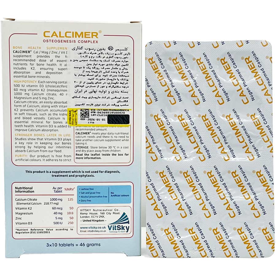 • قرص کلسیمر در بسته بندی 30 عددی تولید نوژن فارمد کاسپین تحت لیسانس Vitsky انگلستان