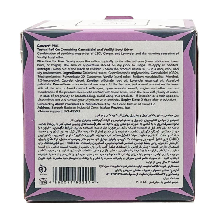 • رول موضعی حاوی کانابیدیول و وانیلیل بوتیل اتر در بسته‌بندی 30 میلی‌لیتری
