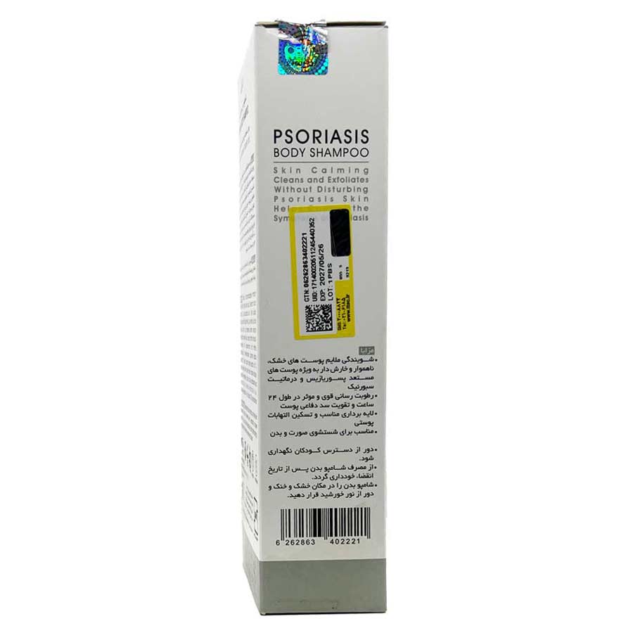 • شامپو بدن PSO در بسته‌بندی 200 میلی‌لیتری تولید شرکت پارس آزمای طب
