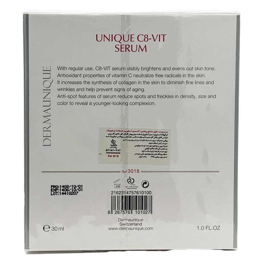 سرم پوست حاوی مشتق ویتامین ث سدیم آسکوربیل فسفات 30 میلی لیتر درمایونیک Dermaunique Unique C8-Vit Serum Ref 3018 -