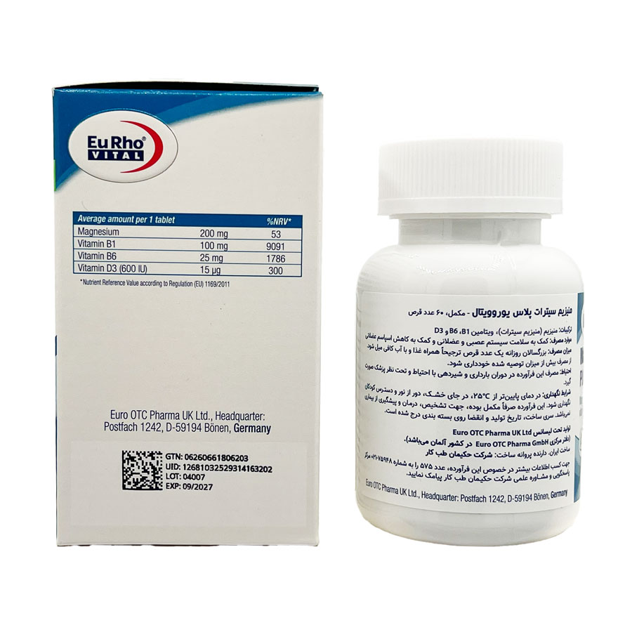قرص منیزیم سیترات پلاس یورویتال Eurhovital Magnesium Citrate Plus