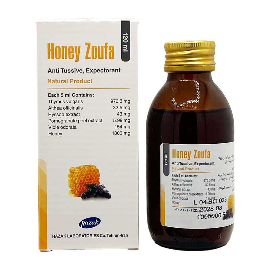 • شربت هانی زوفا در بسته‌بندی 120 میلی‌لیتر تولید داروسازی رازک