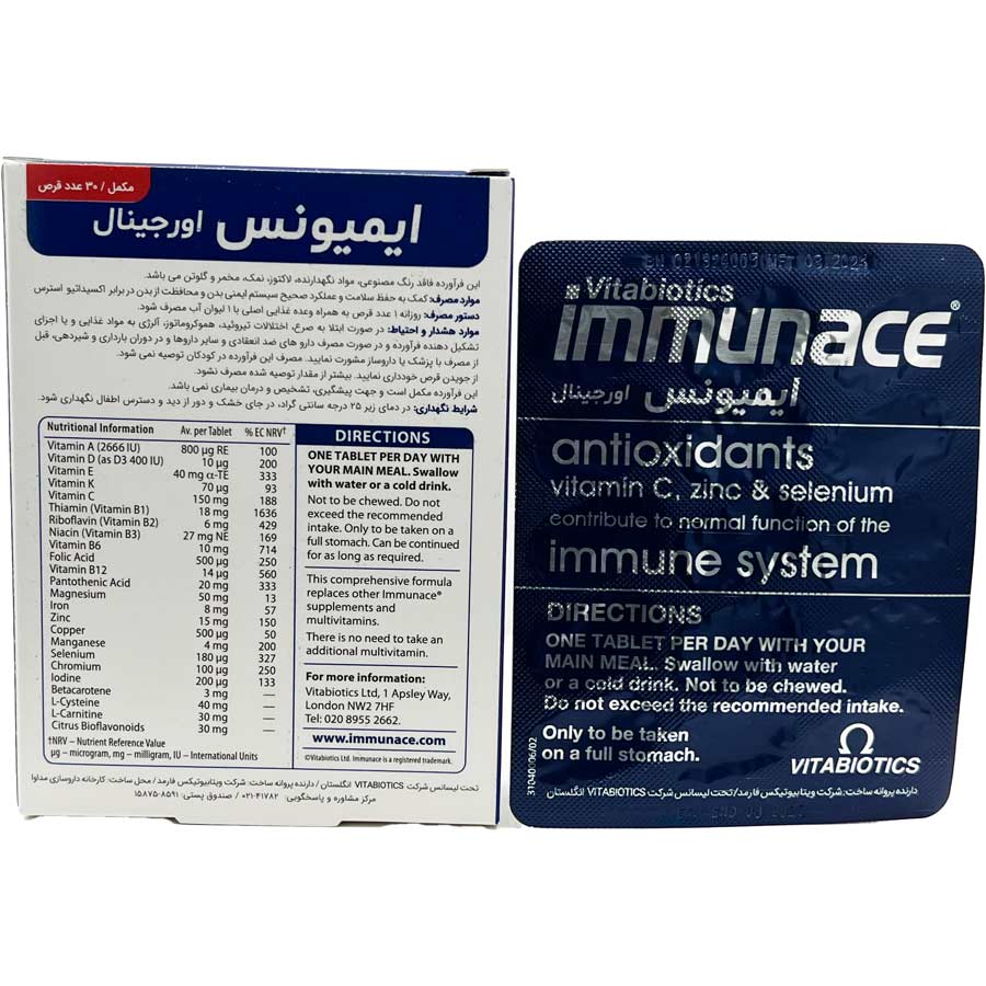 • قرص ایمیونیس ویتابیوتیکس در بسته بندی 30 عددی تحت انگلستان