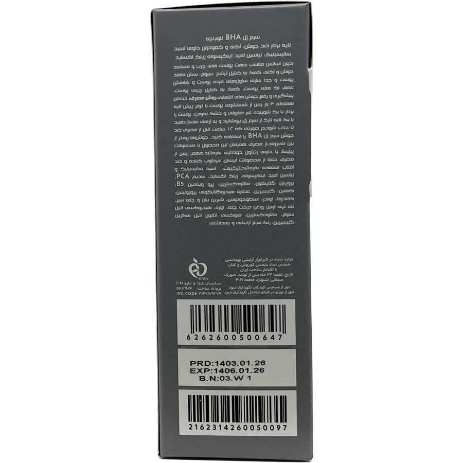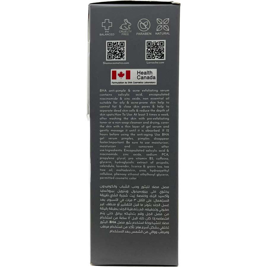 • سرم ژل BHA در بسته‌بندی 50 میلی‌لیتر تولید لابراتوار شمس