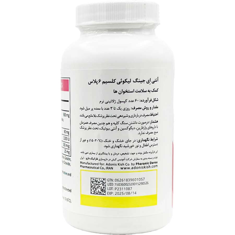 • کپسول نرم لیکوئی کلسیم 6 پلاس  آنتی ایجینگ در بسته بندی 60 عددی تولید داروسازی فارانیک دارو