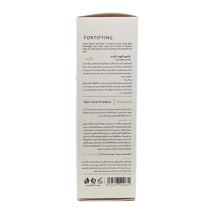 • شامپو تقویت کننده در بسته‌بندی 250 میلی‌لیتری با برند مارگریت Margritte