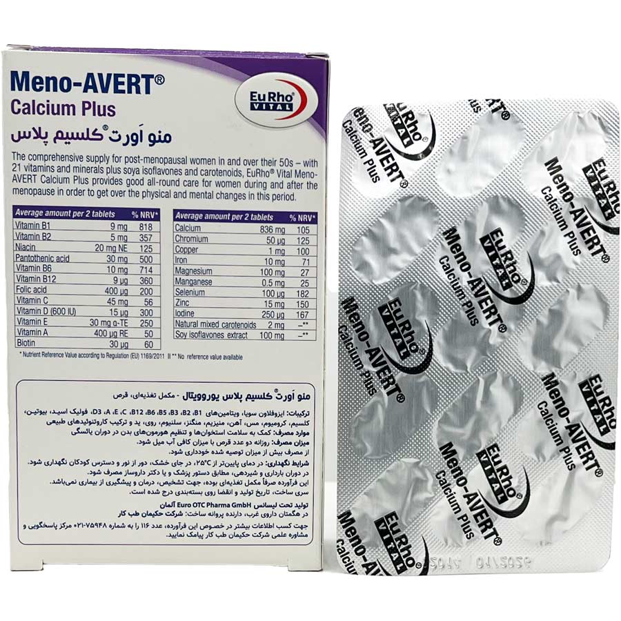 قرص منواورت کلسیم پلاس 60 عددی یورویتال Eurhovital Meno Avert Calcium Plus