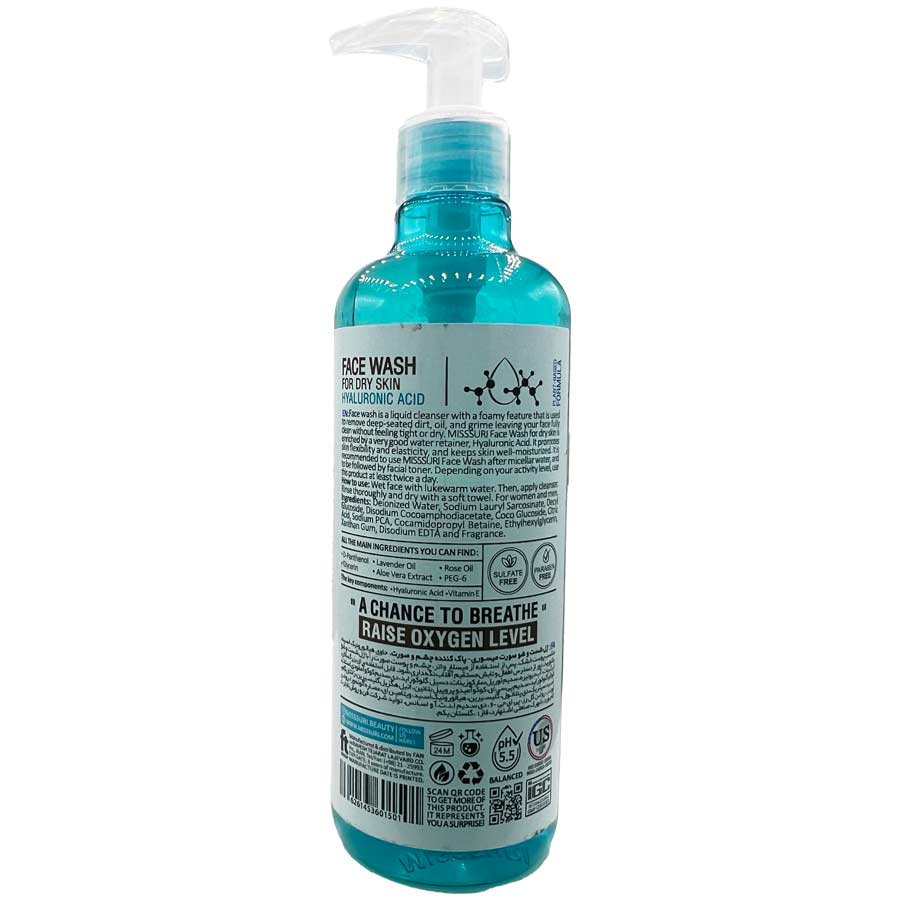 ژل شست و شو صورت پاک کننده چشم و صورت حاوی هیالورونیک اسید مناسب پوست خشک 500 میلی لیتر میسوری Misssuri Face Wash 02 Dry Dull Skin -