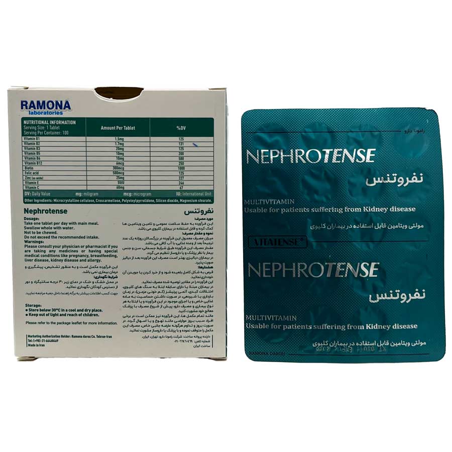 • قرص مولتی ویتامین نفروتنس مناسب برای بیماران کلیوی در بسته بندی 100 عددی تولید داروسازی رامونا دارو