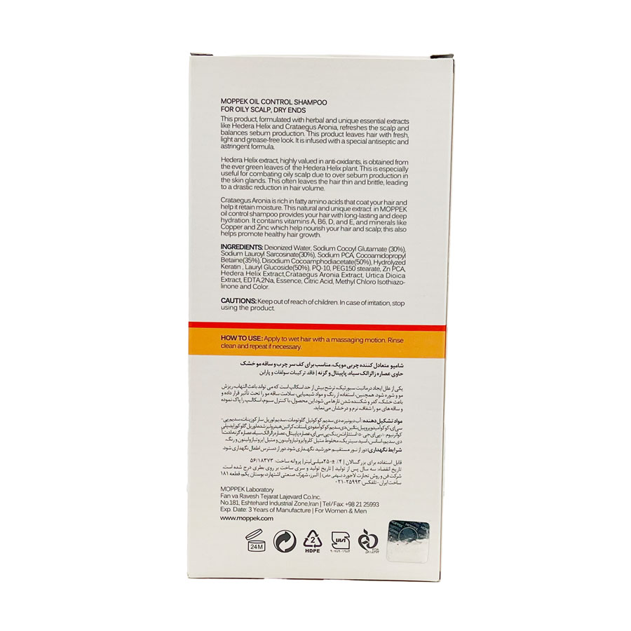 شامپو متعادل کننده چربی موپک Moppek Oil Control Shampoo Oily Scalp Dry Ends