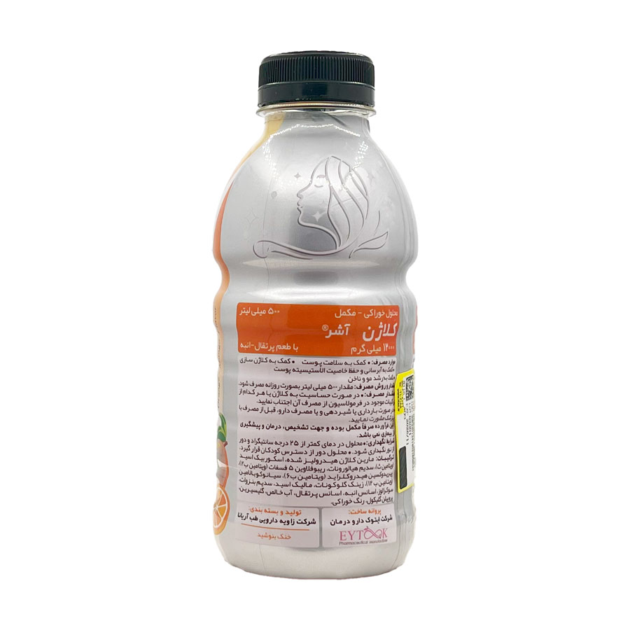 • محلول خوراکی کلاژن در بسته بندی 500 میلی‌لیتری با نام تجاری آشر