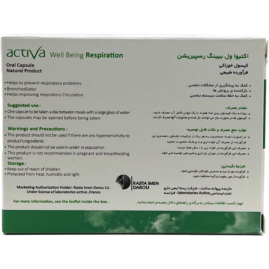 • کپسول اکتیوا رسپیریشن ول بییینگ دربسته بندی 30 عددی تولید رستا دارو ایمن تحت لیسانس لابراتوار اکتیوا فرانسه