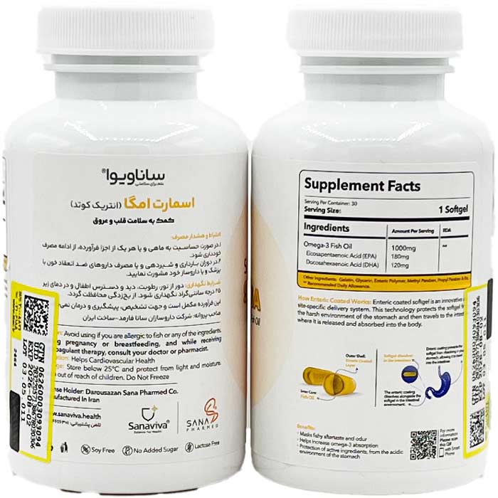 • امگا3 ساناویا حاوی 1 گرم امگا3 در هر کپسول نرم ژلاتینی